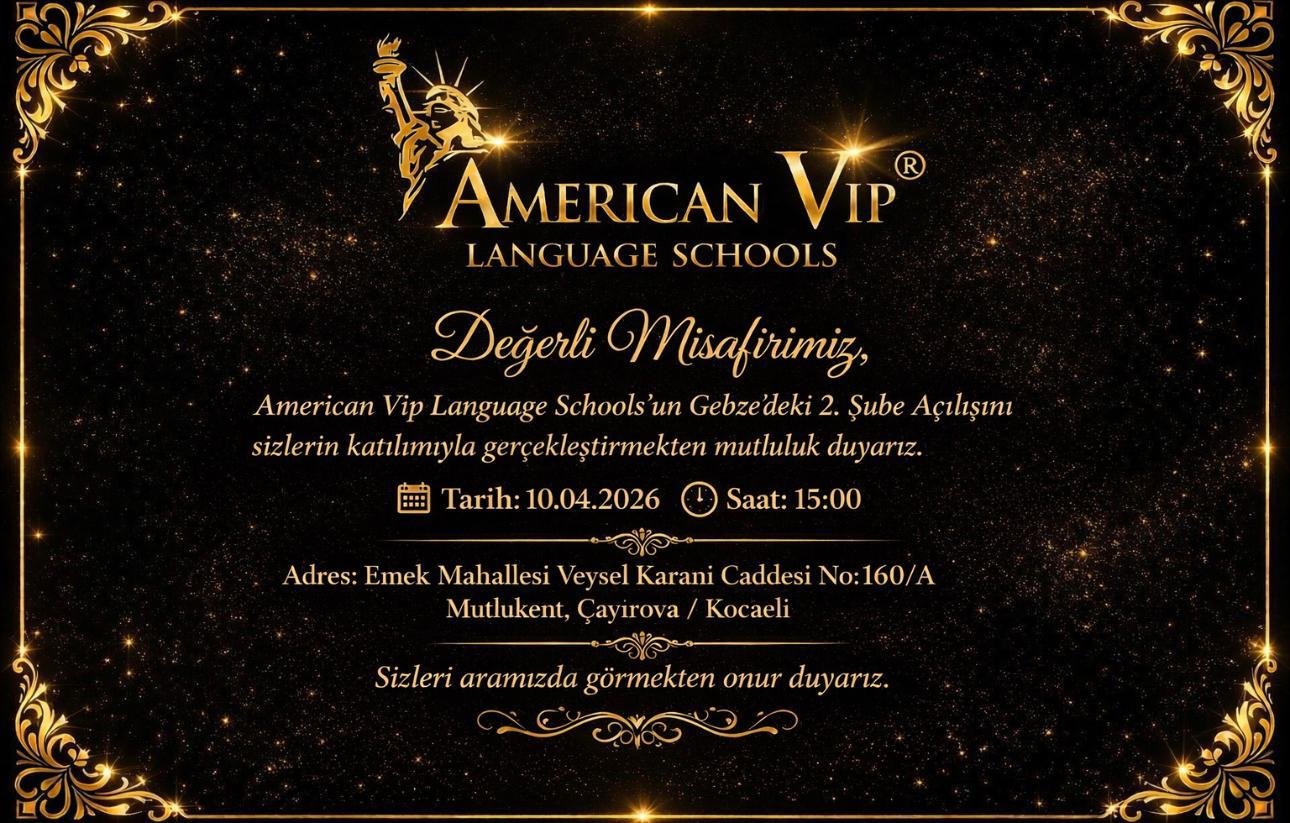 Markalar Birliğinin tecrübesiyle 800 Dil Okulunun En Yeni Dijital Markası olan ve çok kısa süre içerisinde Türkiye genelinde tüm il ve ilçelerde şubelerini açan “American VIP Language Schools” Gebze’de 2. Şubesini 10 Nisan Cuma günü saat 15.00’da Mutlukentte açıyor.