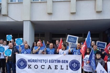 Gebze İlçe Milli eğitim müdürlüğü önünde basın açıklaması gerçekleştiren Hürriyetçi Eğitim Sendikası…