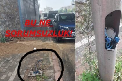 KALDIRIMDAKİ KABLOLAR TEHLİKE SAÇIYOR