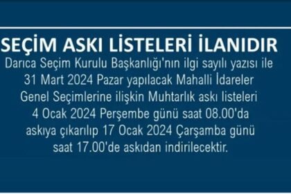 seçmen listeleri askıdan yarın saat 17.00’de inecek. listeler 17 Ocak Çarşamba günü…