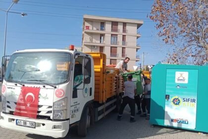 Darıca’da sıfır atık çalışmaları kapsamında ilçenin farklı noktalarına yerleştirilen mobil atık getirme…