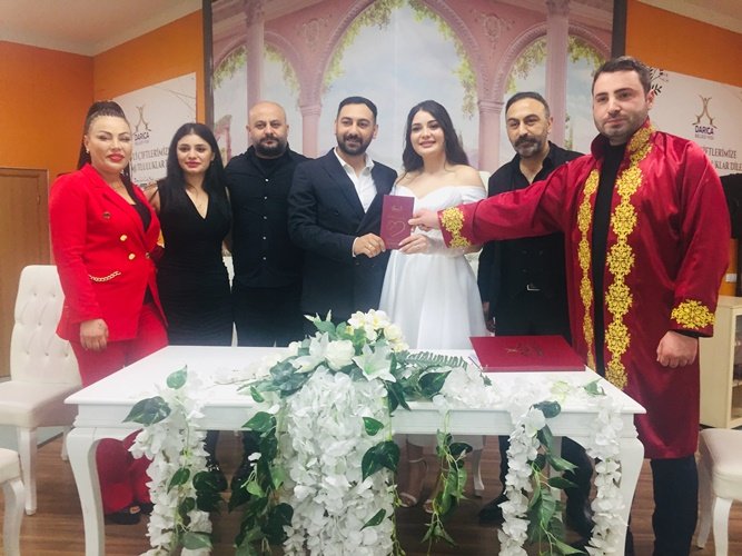 Aydemir Ailesinin güzel kızları Ayfer ile Özer Ailesinin yakışıklı oğulları Bora dünya evine girdi. Aynı zamanda Şahin Kılıç’ın yeğeni olan Bora-Ayfer çifti Darıca Adnan Menderes Kültür Merkezi’nde kıyılan nikah ile evliliğe adım attılar. Aydemir ve Özer Ailelerinin yanı sıra genç çiftin yakınları ile arkadaşlarının katıldığı nikah sonrası evliliğe adım atan genç çiftin 11 Mayıs Perşembe günü akşamı İstanbul Küçükbakkalköy Mahallesi Merdivenköy Yolu Caddesi üzerindeki Glory Premum Wedong Venue’de kına gecesinin ardından 20 Mayıs Cumartesi günü akşamı Darıca Sancaktepe Sosyal Tesislerinde düğün merasimi gerçekleştirilecek. Genç çift kına gecesi ve düğün merasimine tüm yakınlarını davet ettiler. Batıyakası Medya Ailesi olarak Ayfer-Bora çiftine bir ömür boyu mutluluklar diliyoruz.