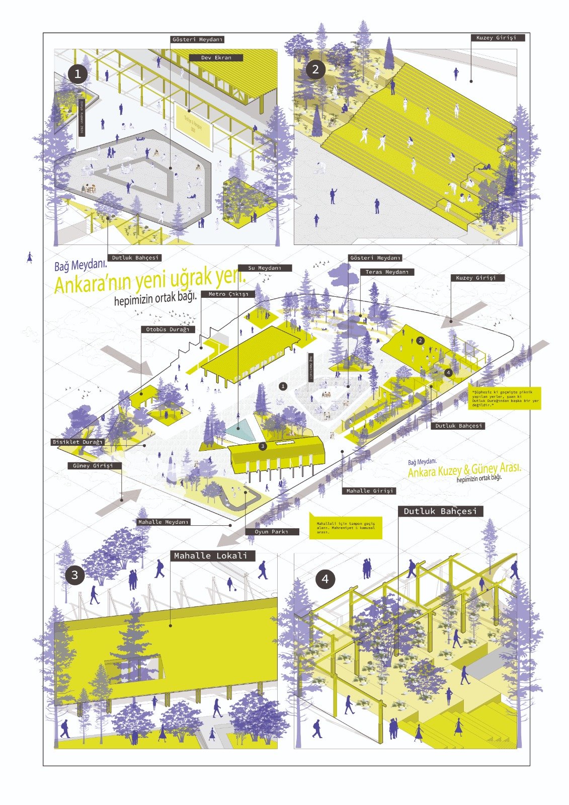 GTÜ öğrencileri tarafından hazırlanan “Bağ Meydanı” başlıklı proje, jüri tarafından yapılan değerlendirmeler sonucunda Eşdeğer Ödül almaya hak kazandı. Yarışma; Ankara ili Keçiören ilçesinde bulunan ve işlevini yitirmiş olan eski Fatih Stadı alanının, kentsel ölçekte tasarım düşünceleriyle yeniden canlandırılmasını ve zenginleştirilmesini amaçlıyordu.