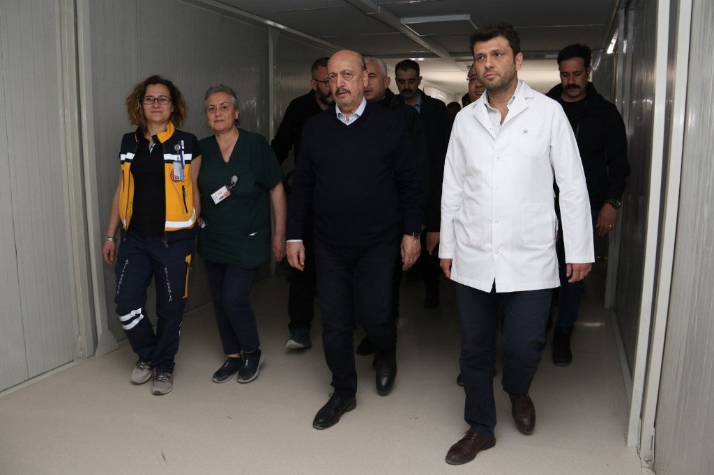 Çalışma ve Sosyal Güvenlik Bakanı Vedat Bilgin ile Türk-İş Başkanı Ergün Atalay, Kocaeli Büyükşehir Belediyesi’nin Hatay’ın Defne ilçesinde inşa ettiği hastaneyi ziyaret etti. Genel Sekreter Balamir Gündoğdu’dan hastanenin alt yapısı, konteyner kurulumu, elektrik ve tesisat işleri gibi çalışmaların 20 gün içinde tamamlandığı bilgisini alan ve hastane personeliyle tanışan Bakan Bilgin, Kocaeli Büyükşehir Defne Hastanesine tam not verdi.