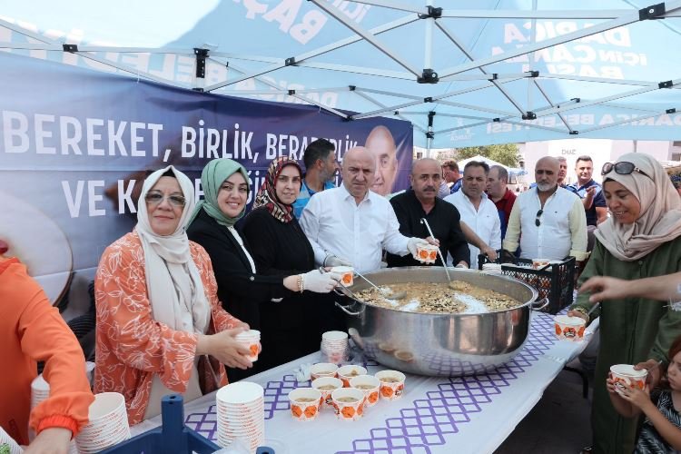 Darıca Belediye Başkanı Muzaffer Bıyık,  Osmangazi Mahallesi’nde Saat Kulesi önünde mahalle sakinlerine aşure ikramında bulundu.