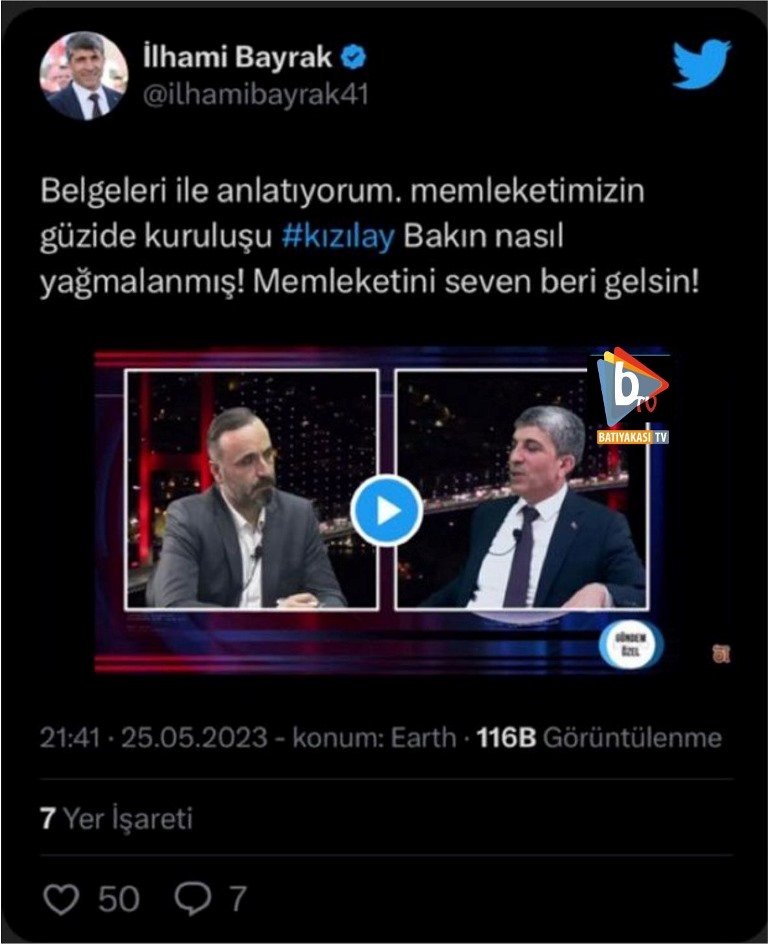 Geçtiğimiz günlerde internet üzerinden yayın hayatını sürdüren Batı yakası Tv’ye konuk olan Çayırova İYİ Parti ilçe başkanı İlhami Bayrak önemli bir iddiayı kamuoyuyla paylaştı. Konuk olduğu programda iddiaların yer aldığı bölümü Twitter hesabında paylaşan Çayırova İYİ Parti ilçe başkanı İlhami Bayrak’ın paylaşımı rekor sayıda izlendi.