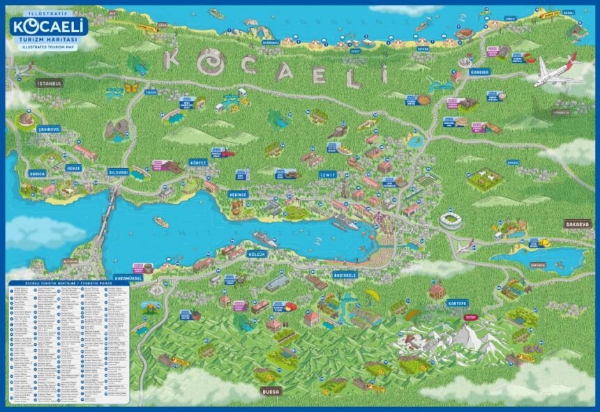 Kocaeli Büyükşehir Belediyesi, Turizm Master Planı eylem planı kapsamında şehrin tarihi, turistik ve kültürel alanlarının yer aldığı ‘Kocaeli İllüstratif Turizm Haritasını hazırladı. İllüstratif çizim tekniğiyle 2 bölüm şeklinde tasarlanan harita…