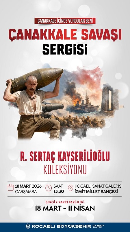 Kocaeli Büyükşehir Belediyesi, Türk tarihinin en önemli destanlarından 18 Mart Çanakkale Zaferi’ni muhteşem bir sergi ile taçlandıracak. Tarih yazarı Dr. Sertaç Kayserilioğlu’nun koleksiyonundan oluşan “Çanakkale İçinde Vurdular Beni” adlı sergi 18 Mart Çarşamba günü (yarın) saat 13.30’da açılacak.