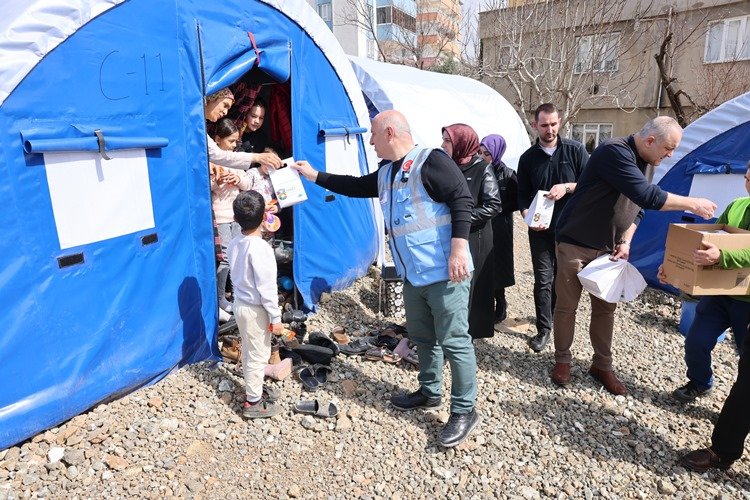 Depremin merkez üssü Kahramanmaraş’ta bulunan Darıca Belediye Başkanı Muzaffer Bıyık, eşi Havva Bıyık’la birlikte çadırkentleri ziyaret ederek depremzede kadınlara kişisel bakım seti ve hijyen paketi hediye ederek 8 Mart Dünya Kadınlar Günü’nü kutladı.