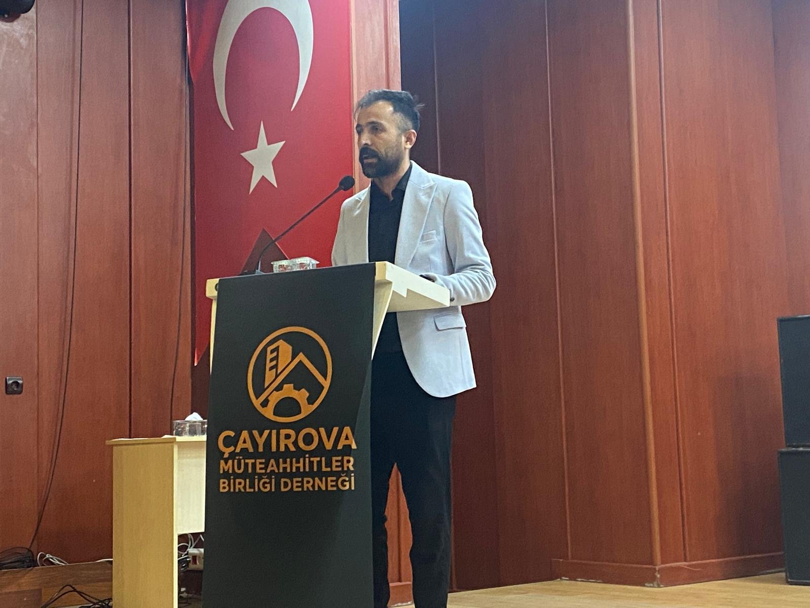 Çayırova Müteahhitler Birliği Başkan Yardımcısı Sadık Cila’da konuşmasında birlik ve kurumsallaşmanın önemine dikkat çekti. ‘’Birliğin olmadığı yerde bereket olmaz; bereketin olmadığı yerde ise kalıcı ve doğru işler inşa edilemez’’ diyen Cila, Dernek yönetimi olarak gerçekleştirdikleri toplantıların ardından bölgedeki mimar, mühendis ve jeoloji mühendisleriyle bir araya gelerek istişarelerde bulunarak değişkenlik gösteren uygulamalar yerine, bazı konuları kalıcı hâle getirmek ve ortak akılla hareket etmek istediklerini vurguladı.