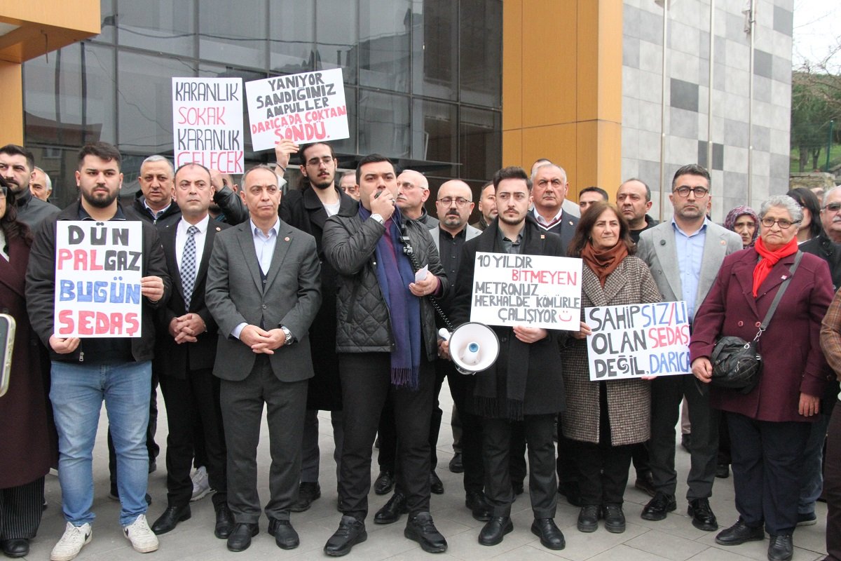 CHP Darıca Darıca Belediye Meclis toplantılarının gerçekleştirildiği Rüstem Metin Yurttaş Kültür Merkezi önünde SEDAŞ’ı protesto etti.  İlçe Başkanı Hüseyin Cihan Özaltan, CHP Darıca Belediyesi Meclis Üyeleri, İlçe Kadın Kolları Başkanı Sultan Ekinci ve partililer Darıca Belediyesi şubat ayı olağan meclis toplantısının ardından basın açıklaması gerçekleştirdiler. Basın açıklamasını yapan CHP Darıca İlçe Başkanı Hüseyin Cihan Özaltan şu görüşlere yer verdi “Bugün belediye meclisinde soğuk, karanlık kış günlerinin hesabını sormaya konuyla ilgili olarak belediye başkanında cevaplar almak için bir araya geldik. Meclis toplantısı biterken tam istediğimiz gibi ilerliyordu. Belediye başkanı SEDAŞ ile ilgili verdiğimiz önergede birçok eleştiriyi de kabullenmiş ve ortak çalışmayı da teklif etmişti. Fakat belediye meclisinin oturumunun sonlarına doğru kullanılan dil, yapılan üslup bozukluğunu kesinlikle kabul etmiyoruz.