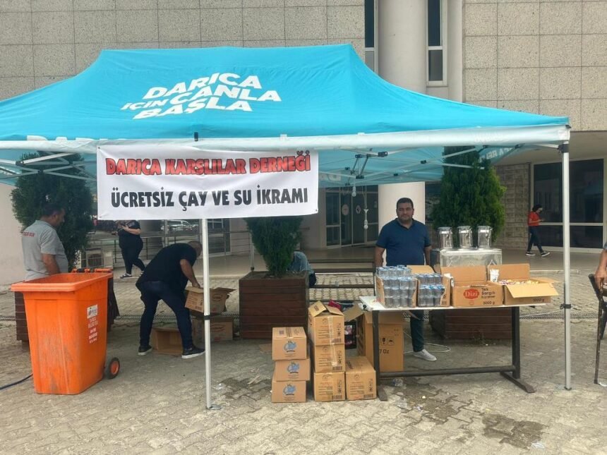 Darıca Karslılar Yardımlaşma ve Dayanışma Derneği Darıca Farabi Eğitim ve Araştırma Hastanesi poliklinikler girişinde kurduğu stant aracılığıyla vatandaşlara su ve çay ikramında bulunuyor. Dernek başkanı Ali Şen hastane kantininin bir süre kapalı olacağından dolayı vatandaşların mağdur olmaması ve mağduriyetlerini gidermesi açısından gelen talepler doğrultusunda böyle bir uygulamaya gittiklerini söyledi. Bahçeye kurulan standla vatandaşlara ücretsiz 24 saat çay, simit, poğaça ikramında bulunduklarını vurgulayan Başkan Şen, her türlü masrafın dernek tarafından karşılanacak olan hizmetin yaklaşık 1,5 ay süreceğini de söyledi.