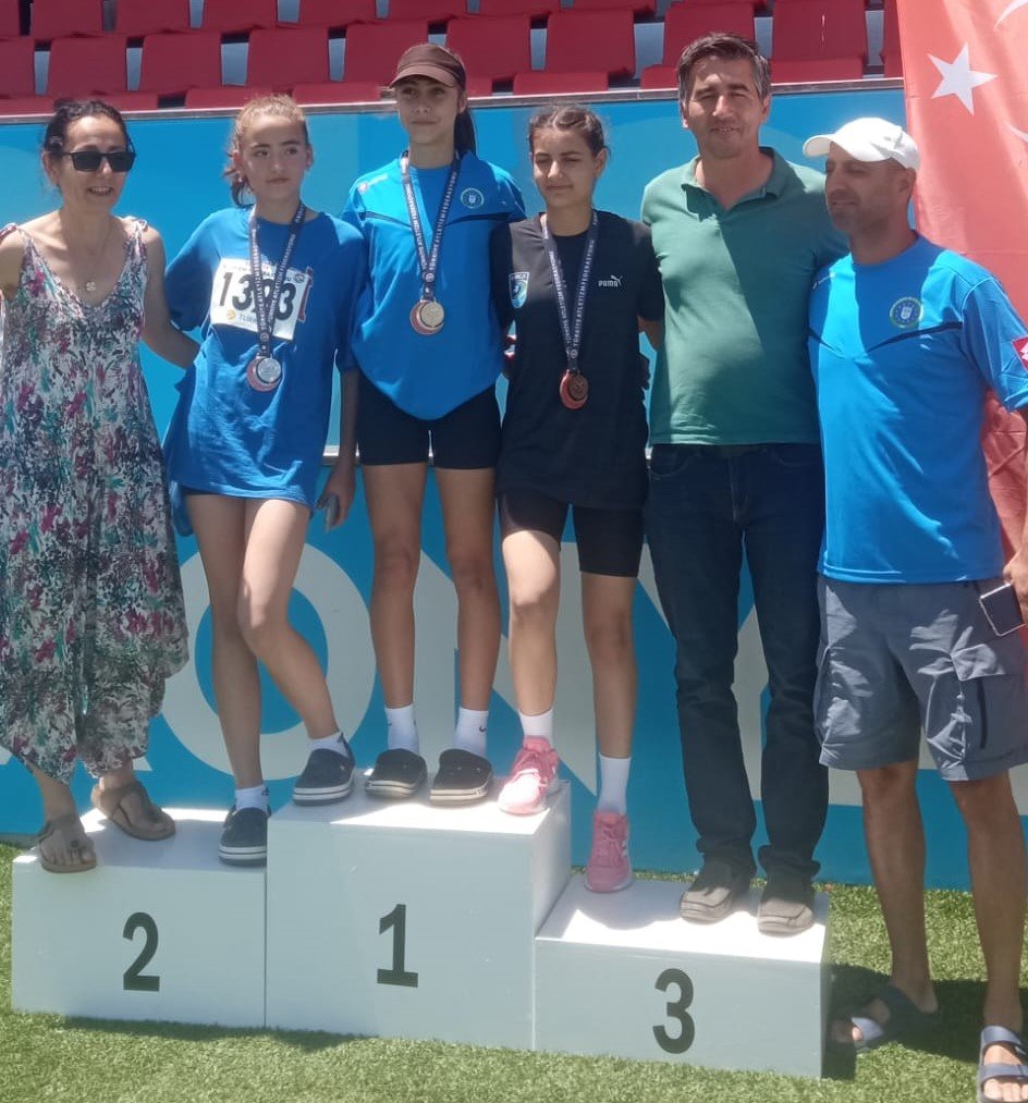 Mücadele ettiği her branşta madalyalara adeta ambargo koyan ve elde ettiği başarılarla ilçenin gururu olan Darıca Belediyesi Eğitim ve Spor Kulübü’nden bir güzel haber de atletizm branşından geldi. Konya’da düzenlenen TAF Türkcell Küçükler Ligi Final müsabakalarında Darıcalı sporculardan Ecrin Kuckar, uzun atlamada Türkiye birincisi olarak altın madalyanın sahibi oldu. Damla Nur Arslan, 60 metre engelli müsabakasında üçüncü ve Ceren Alkan ise 800 metrede Türkiye üçüncüsü olarak bronz madalyanın sahibi oldular.
