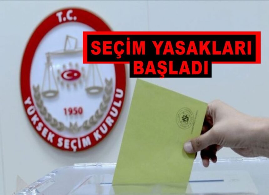 Seçim yasakları da bugün devreye giriyor. Bugün saat 18.00’de başlayacak propaganda yasağı 24 saat devam edecek. Yarın sabah 06.00’dan gece yarısına kadar ise alkol satışı yasak olacak. Ayrıca kahvehane, kıraathane ve internet kafe gibi bütün umumi eğlence yerleri kapalı kalacak.