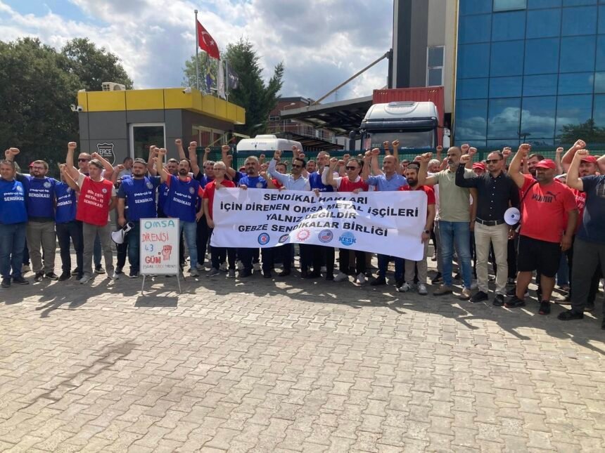 Anayasal haklarını kullanarak Birleşik Metal İş Sendikası Gebze 1 No’lu Şubesi’nde örgütlendikleri için işten çıkartılan 57 Omsa Metal işçisinin 43 gündür kapı önü direnişi devam ediyor.