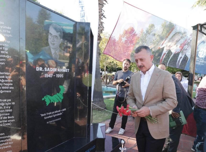 Batı Trakya Türklerinin unutulmaz lideri Dr. Sadık Ahmet, Kocaeli’de unutulmuyor. Bu kapsamda Kocaeli Büyükşehir Belediyesi ve Batı Trakya Türkleri Dayanışma Derneği İzmit Şubesinin öncülüğündeki 13 STK’nın düzenlediği etkinlikte, Doğu Kışla Parkı’na inşa edilen Dr. Sadık Ahmet Anıtı’nın açılışı gerçekleştirildi. Yunanistan’da Batı Trakya Türklerinin hakları için verdiği mücadeleyle tanınan Dr. Sadık Ahmet’in hatırasını yaşatmak için Büyükşehir tarafından inşa edilen anıtın açılışına Kocaeli Büyükşehir Belediye Başkanı Tahir Büyüakın, Dr. Sadık Ahmet’in eşi Işık Ahmet, Batı Trakya Türkleri Dayanışma Derneği Genel Başkanı Hasan Küçük, Batı Trakya Türkleri Dayanışma Derneği İzmit Şubesi Başkanı Yüksel Öztürk, Kocaeli Kent Konseyi Başkanı Ali Korkmaz, Siyasi Parti İl Başkanları, STK temsilcileri ve vatandaşlar katıldı.