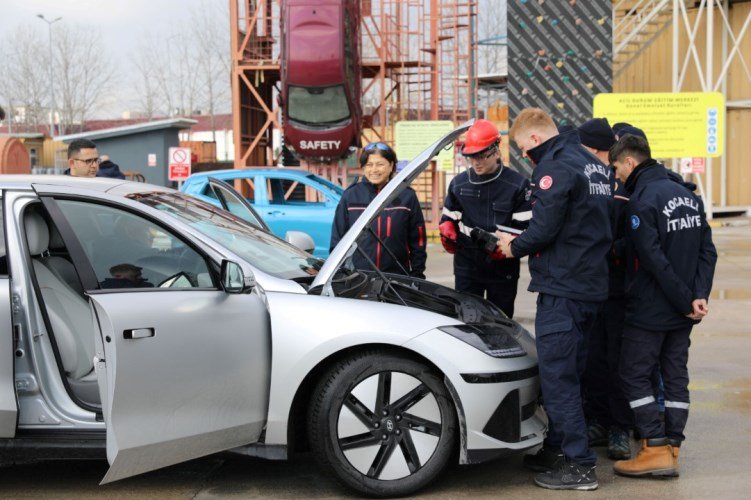 Trafikte seyreden elektrikli araç sayısı her geçen gün artıyor. Özellikle olası yangın ve kaza durumlarında ilk müdahale görevini üstlenen Kocaeli Büyükşehir Belediyesi İtfaiye Dairesi Başkanlığı ekipleri, kendi bilgi ve beceri düzeyini artırmak adına sektörün uzmanları ile işbirliği yaparak eğitim alıyorlar.