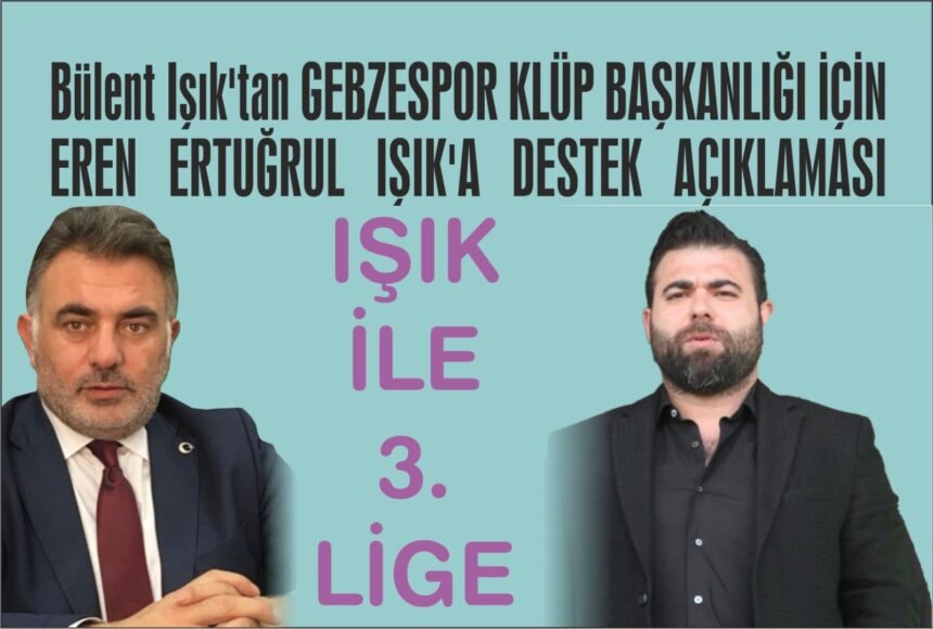 Sosoyal medya paylaşımında Eren Ertuğrul Işık’a desteğini açıklayan Bülent Işık; “Gebze spor Başkanı Spor camiasında tecrübeli genç çalışkan ve arkasına Batı yakısında 80 bin Ardahan nüfusunu arkasına alacak olan koca yürekli adam Eren Ertuğrul Işık olmadır bizler sonuna kadar yanında oluruz” dedi.