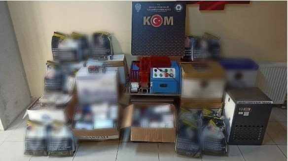 – 1 adet tütün sarma makinesi ve buna bağlı hava aparatı ele geçirildi.