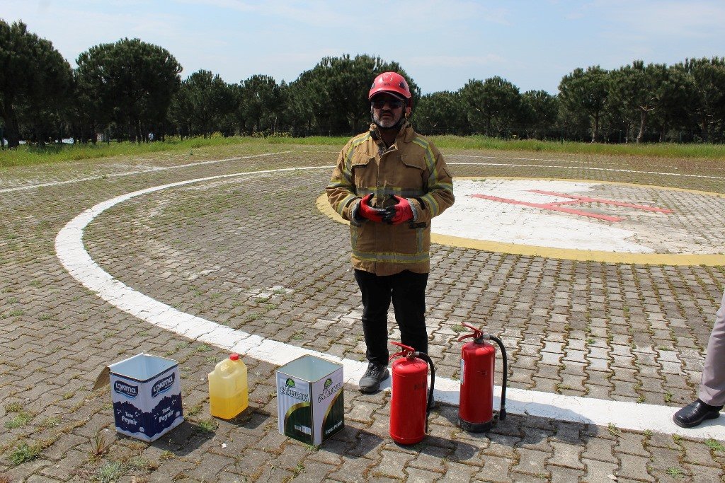 Eğitim kapsamında; yangın çıkış sebepleri, yangınların sınıflandırılması, etkenleri, yangın yerindeki tehlikeler ve doğru hareket tarzı, mücadele ve müdahale yöntemleri, yangın söndürmede kullanılan maddeler ile söndürme prensipleri hakkında detaylı bilgiler verildi.