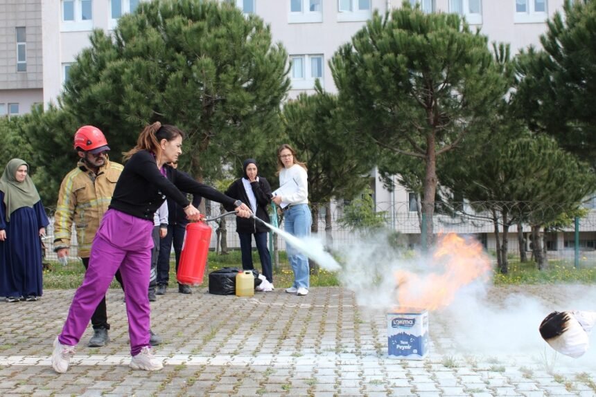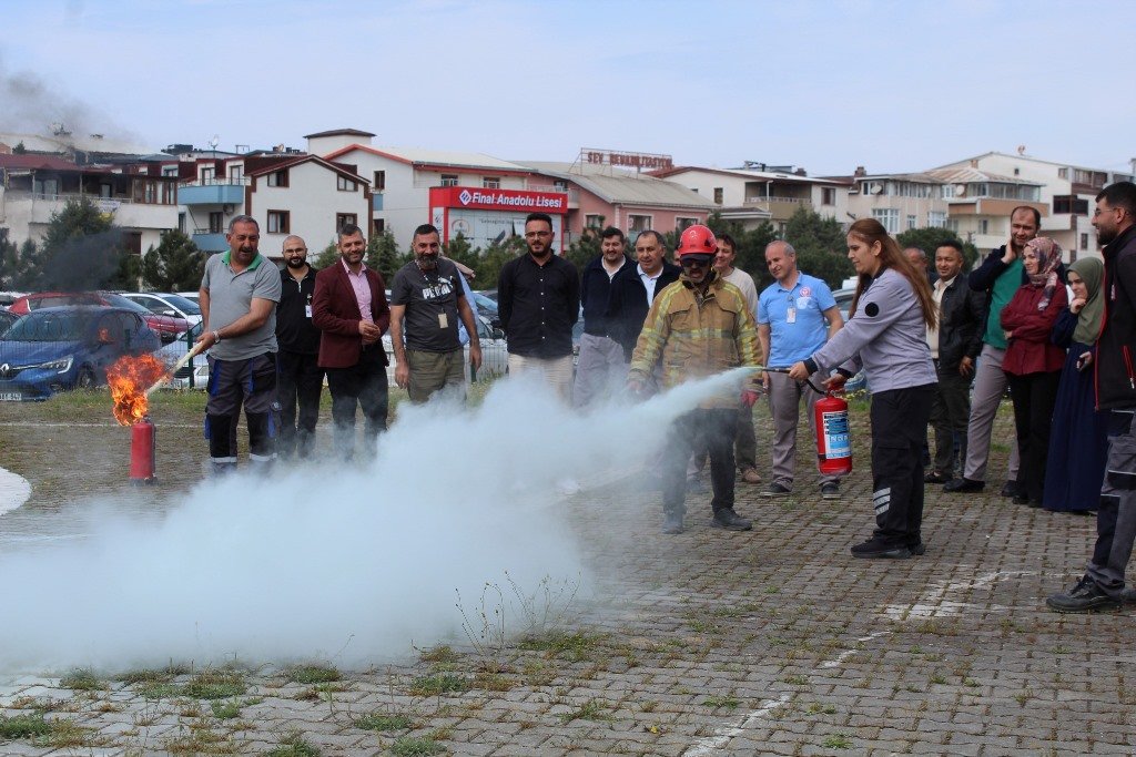 Programın sonunda sağlık çalışanları, uygulamalı tatbikatla edindikleri bilgileri pekiştirdi. Tatbikatta yangına nasıl müdahale edilmesi gerektiği adım adım gösterilerek, katılımcıların pratik deneyim kazanması sağlandı.