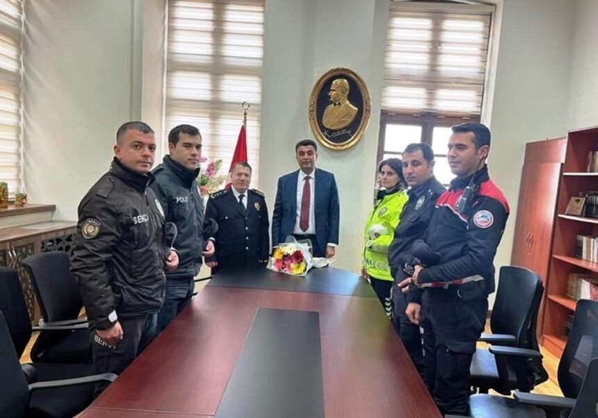 Emniyet Teşkilatının 178. kuruluş yıldönümü kutlama haftası kapsamında, İlçe Emniyet Müdürü Ahmet Zihnî Manap,emniyet mensubu polis ve bekçi memurlarından oluşan bir heyet Darıca Kaymakamı Yüksel Kara’yı makamında ziyaret ettiler. Kaymakam Kara, Emniyet Müdürü Ahmet Zihni Manap ve beraberindeki memurlara ziyaretlerinden duyduğu memnuniyeti dile getirerek; ‘’Türk Polis Teşkilatı’nın 178. kuruluş yıldönümünü kutluyorum. Milletimize hizmet yolunda büyük bir özveri ve fedakarlık içinde çalışan polis ve bekçilerimize teşekkür ediyor, işlerinde kolaylıklar diliyorum.’’ Dedi.