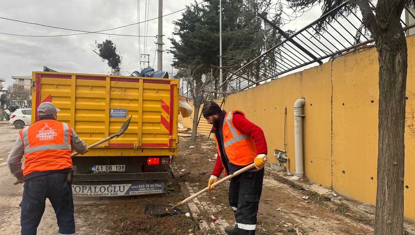 Darıca Belediyesi temizlik ve fen işleri ekipleri, zorlu hava şartlarına rağmen yolların açılması, devrilen ağaçların kaldırılması ve güvenlik risklerinin giderilmesi için çalışmalarını aralıksız sürdürüyor. Yetkililer, hasarın boyutunun hava koşullarının normale dönmesinin ardından netlik kazanacağını belirtti.