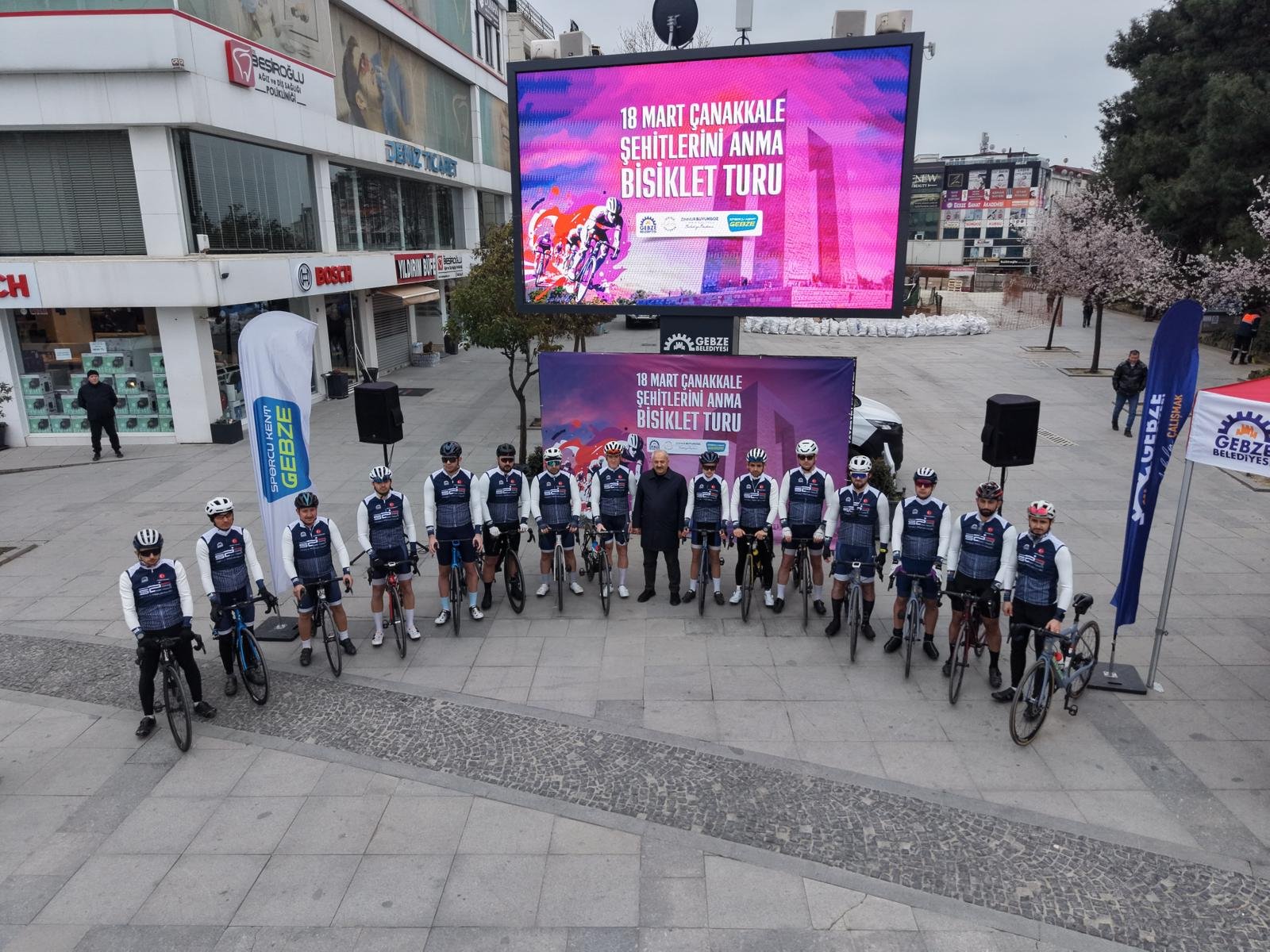 Gebze Belediyesi tarafından bu yıl 7’ncisi düzenlenen “18 Mart Çanakkale Zaferi Bisiklet Turu”, coşkulu bir törenle başladı. Gebze Belediye Başkanı Zinnur Büyükgöz, Gebze Kaymakamı Mehmet Ali Özyiğit, Gebze İlçe Gençlik ve Spor Müdürü Hikmet Tatoğlu ve organizasyon ortaklarının katılımıyla gerçekleştirilen açılış töreninin ardından bisikletçiler, Gebze’den Çanakkale’ye doğru yola çıktı.