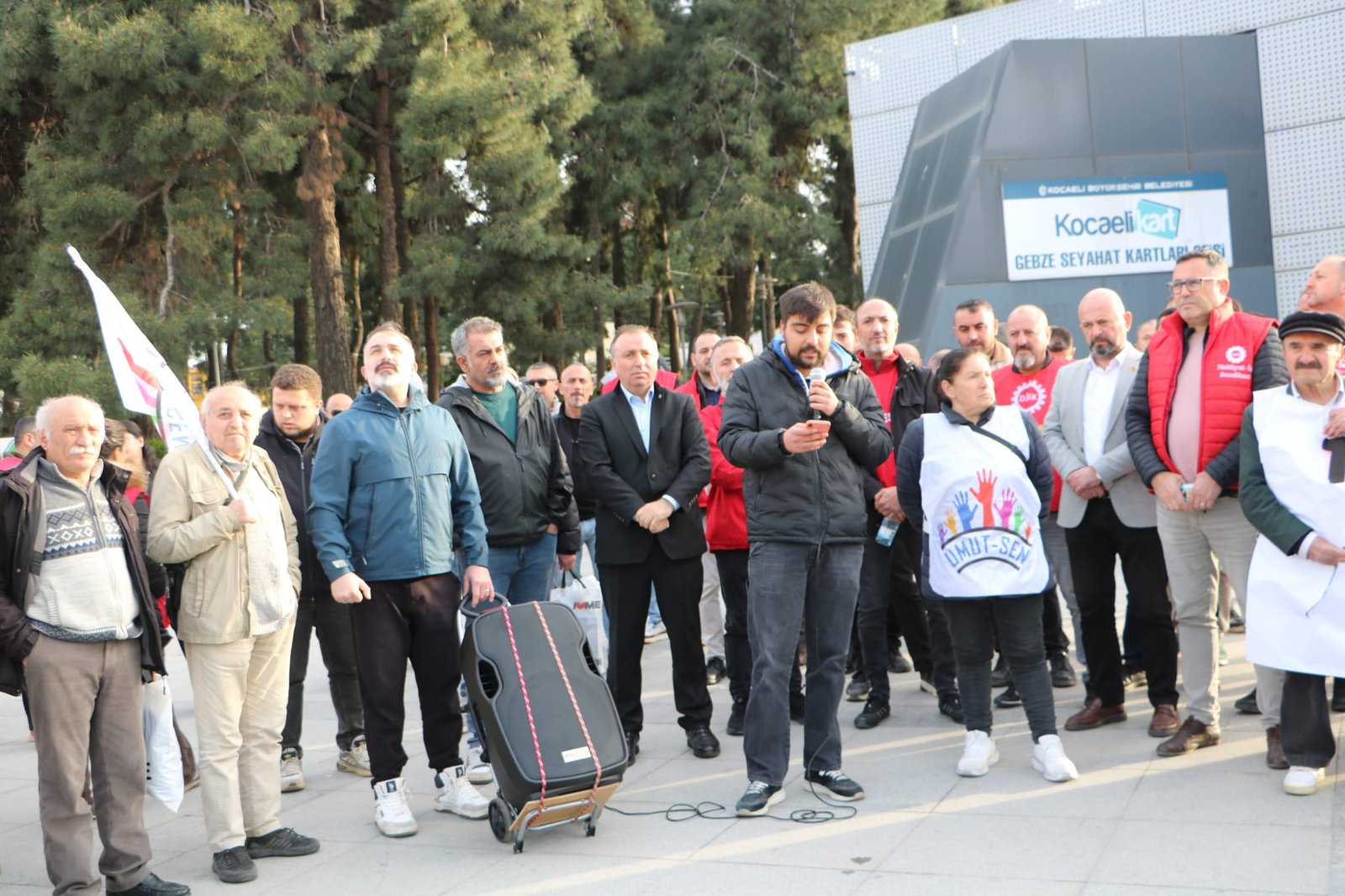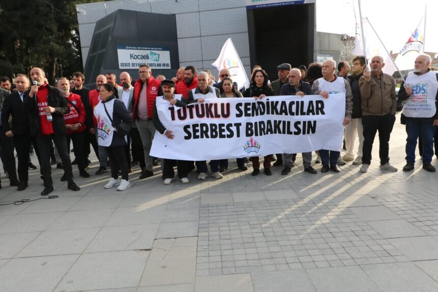 Gebze Kent Meydanı’nda bir araya gelen sendikalar ve sivil toplum kuruluşları, son dönemde artan tutuklamalara karşı güçlü bir açıklama yaptı.