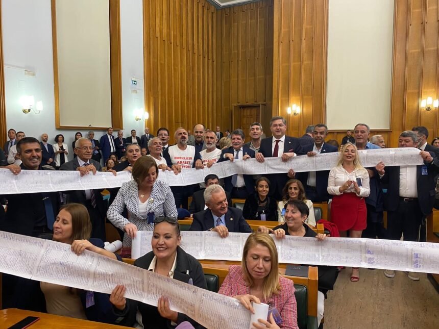 Gebze EYT ve Emekliler Derneği topladıkları imzalar ile CHP TBMM Grup toplantısına katılarak seslerini duyurmaya çalıştı. Toplanan binlerce imzanın bulunduğu kağıtlar grup toplantısında açıldı.