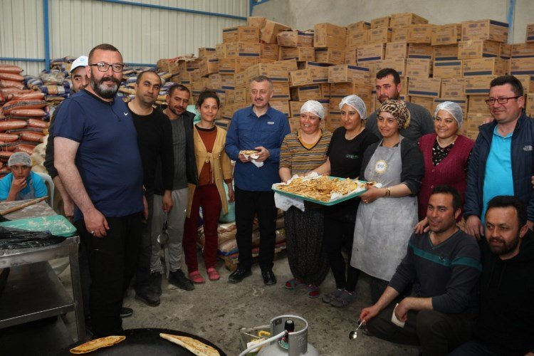 Bu kapsamda Antikkapı mutfağında ilk olarak Hatay usulü ıspanaklı gözleme yapıldı. Depremzede kadınlar, mutfakta maharetli elleriyle ıspanaklı gözlemeye lezzet verdi. Kocaeli Büyükşehir Belediye Başkanı Tahir Büyükakın’ın da ziyaret ettiği kadınlar, kendisine gözleme ikram ederken sağladıkları imkanlardan dolayı teşekkür etti.