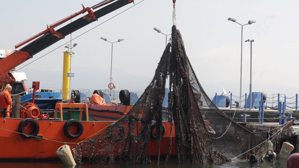 İZMİT KÖRFEZİNDEN 5 TON HAYALET AĞ ÇIKARILDI