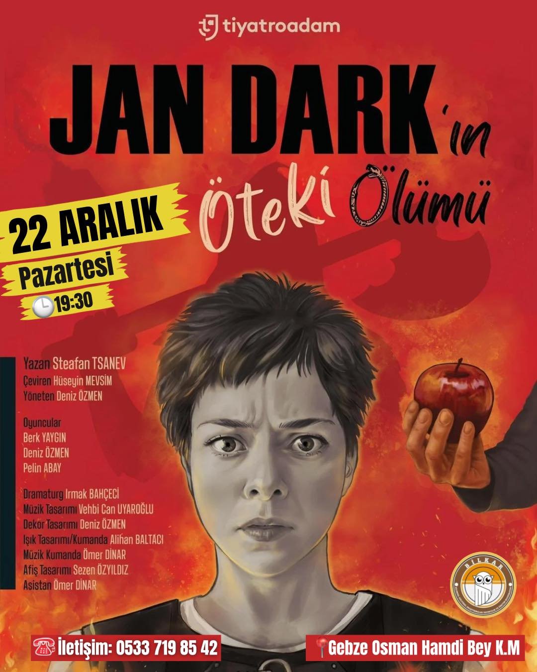 Deniz Özmen’in yönettiği, dekor tasarımını yapıp oynadığı ; diğer rolleri Berk Yaygın ve Pelin Abay’ın paylaştığı “Jan Dark’ın öteki ölümü” insanlık onurunu, ihaneti, özgürlük ve bağımsızlık arayışını, vatanseverliğin ve dinin tarih boyunca nasıl birer sömürü aracına dönüştürebildiğini keskin bir mizah ve usta bir anlatımla sahneye taşıyor.