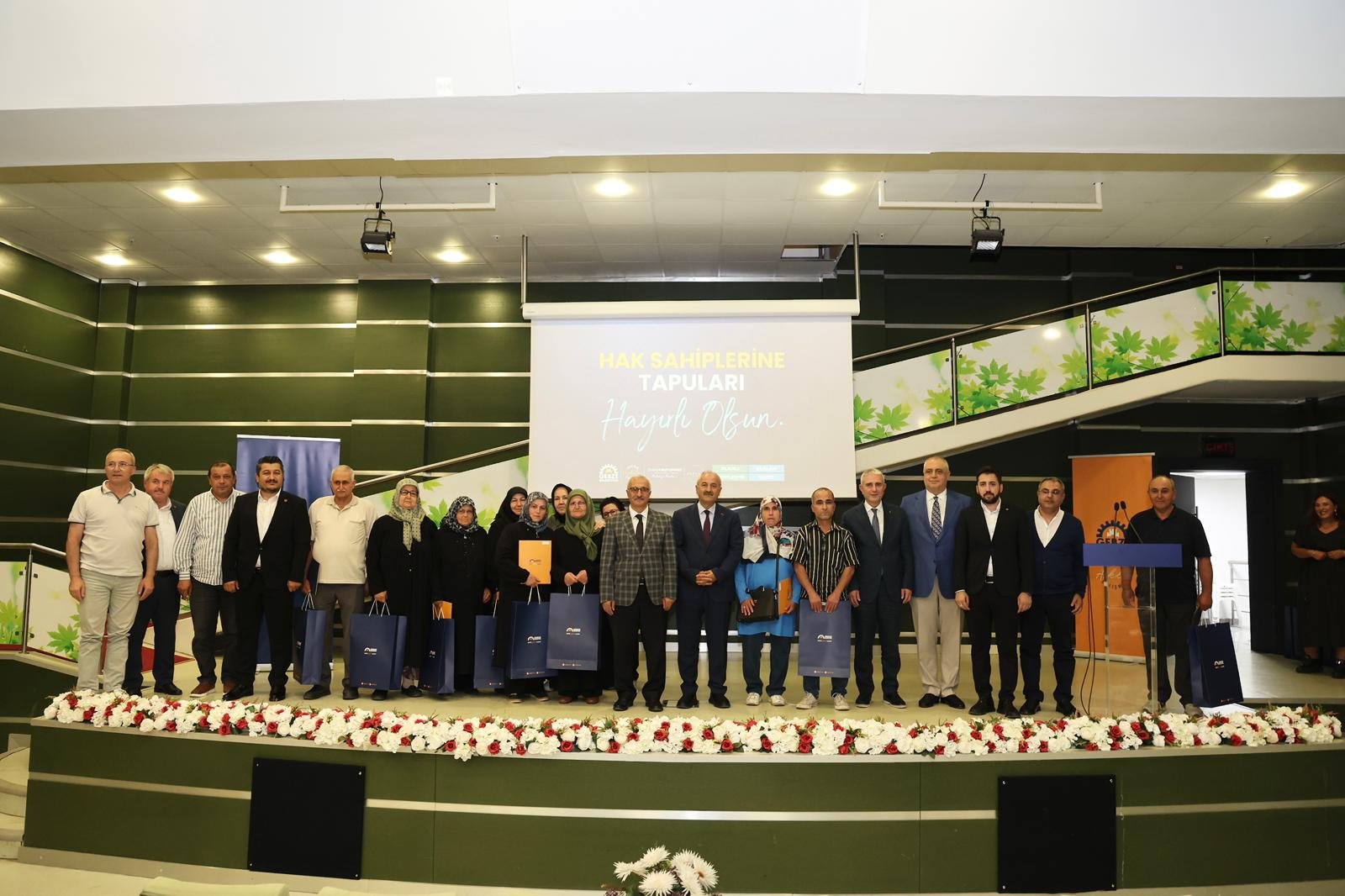 Gebze Kültür Merkezi Kardelen Salonu’nda düzenlenen törene Gebze Kaymakamı Mehmet Ali Özyiğit, Gebze Belediye Başkanı Zinnur Büyükgöz, ilçe protolü, siyasi partilerin temsilcileri, hak sahibi vatandaşlar ve çok sayıda davetli katıldı. Törende vatandaşlara tapuları protokol üyeleri tarafından teslim edildi.