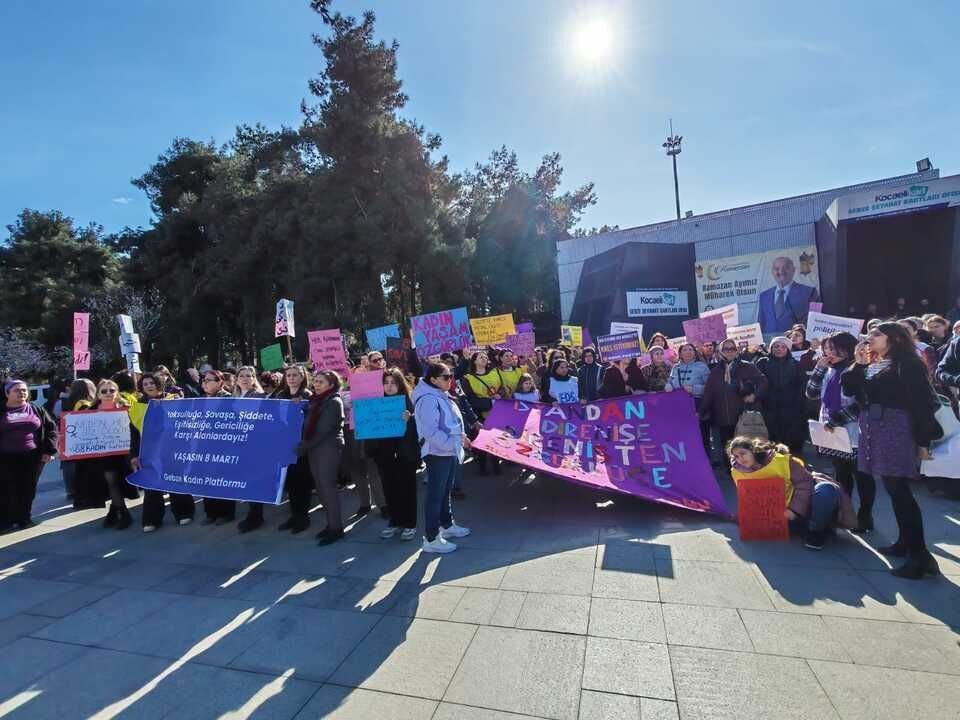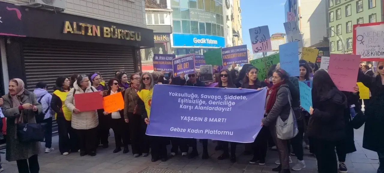 Gebze Kent Meydanı’ndaki açıklama, “Yaşasın örgütlü kadın mücadelemiz” sloganlarıyla sona erdi. Katılımcılar, eşit ve özgür bir yaşam için mücadeleyi büyütme çağrısı yaptı.