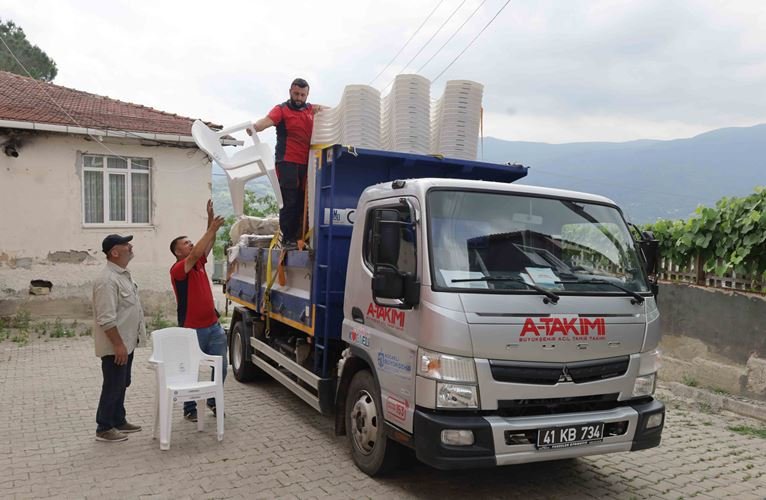 Kocaeli’de, kırsal mahallelerdeki vatandaşların cemiyetlerde, sosyal ve kültürel etkinliklerde kullanması için muhtarlardan gelen talep üzerine 40 bin sandalye, 24 bin tabure ve 6 bin masa desteği sağlandı.