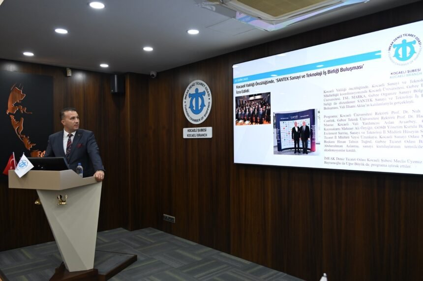 İstanbul ve Marmara, Ege, Akdeniz, Karadeniz Bölgeleri (İMEAK) Deniz Ticaret Odası Kocaeli Şubesi’nin Kasım ayı 38. Olağan Meclis Toplantısı, Meclis Başkan Yardımcısı Yılmaz Sarıaslan’ın yönetiminde şube meclis salonunda gerçekleştirildi. Meclis Başkanı Vefa İbrahim Aracı ise meclise yurt dışından ‘zoom’ aracılığıyla hibrit olarak katıldı. Saygı duruşu İstiklal Marşı’nın ardından toplantının açılış konuşmasını yapan Sarıaslan, hazirunu selamlayıp, meclis gündem ve program akışını sundu.