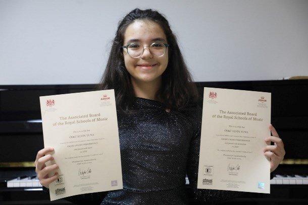 Kocaeli Büyükşehir Belediye Konservatuvarı Piyano Bölümü öğrencisi 11 yaşındaki Öykü Elvin Tuna, Finlandiya ve Güney Kore’de online olarak yapılan yarışmalarda kendi kategorisinde aldığı derecelerle Türkiye’ye gurur yaşattı. Gelecek vadeden genç piyanist, Güney Kore’deki yarışmada birinci; Finlandiya’da yapılan yarışmada ise ikinci oldu. Her iki yarışmaya Büyükşehir Belediye Konservatuvarı’ndaki eğitmeni Nurcan Maya ile hazırlanan Öykü Elvin, “Yarışmanın sonunda herkes beni tebrik etti, başarımı kutladı. Büyükşehir Belediye Konservatuvarı’nda aldığım eğitim sayesinde bu dereceleri elde ettim” dedi.