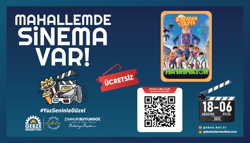 Gebze Belediyesi’nin yaz akşamlarına neşe katan “Mahallemde Sinema Var” etkinlikleri, Belediye Başkan Yardımcısı Dursun Ali Arslan’ın vefatı nedeniyle ertelenmişti. Program, 18 Ağustos Pazartesi günü başlıyor.