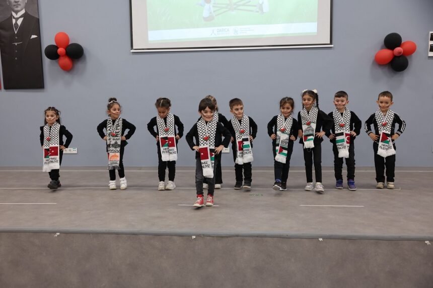 Gösteri sonunda kısa bir konuşma yapan Başkan Muzaffer Bıyık, hem Gazze’deki çocukların yaşadığı zorluklara hem de Darıcalı çocukların duyarlılığına dikkat çekerek şöyle konuştu: “Gazze’deki çocukların yaşadığı acılar hepimizin yüreğini yakıyor. Onların sesi olmak, yaşadıkları dramı unutturmamak hepimizin sorumluluğu. Bugün burada sahneye çıkan ve bu duyarlılığı gösteren tüm çocuklarımızı yürekten kutluyorum. Barış ve huzur dolu bir dünya için çalışmak, her çocuğun eşit fırsatlara sahip olduğu bir gelecek inşa etmek bizim görevimiz.”