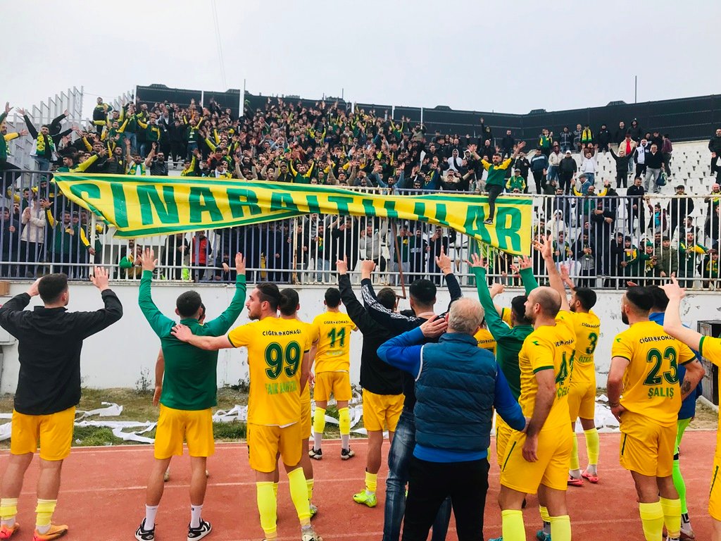 Maçı bitimiyle taraftarlarlarına koşan futbolcular ve teknik heyet galibiyeti coşku ile kutladılar.