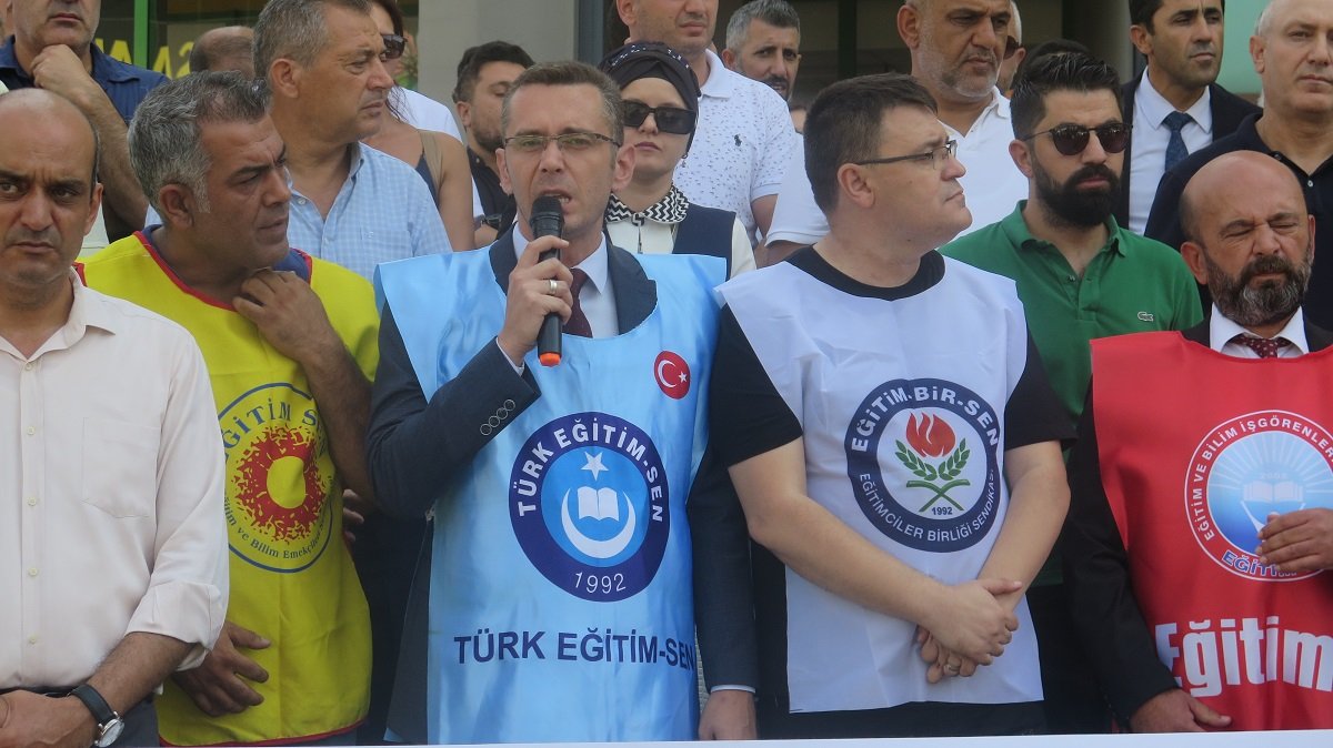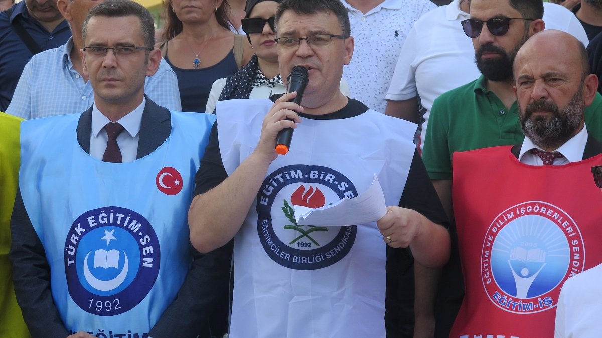 Yapılan basın açıklamasının ardından söz alan sendikaların temsilcileri de yaşanan olayı kınayarak eğitimcilere yapılan saldırıların son bulmasını, saldırganların cezalandırılmasını talep ettiler.