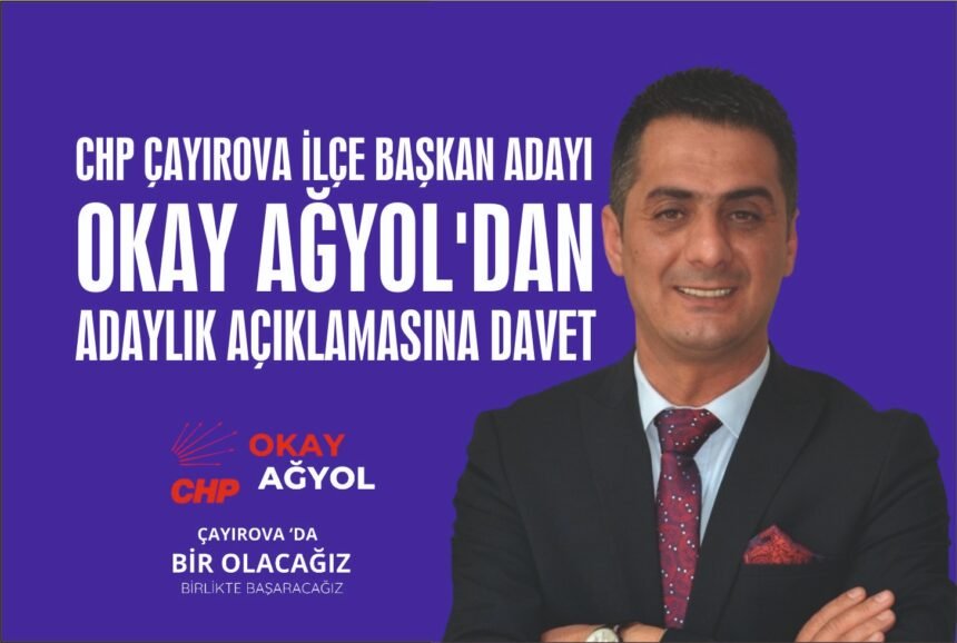 Cumhuriyet Halk Partisi (CHP) Çayırova İlçe Başkanlığı için adaylığını açıklayacak olan Okay Ağyol, 13 Ağustos Çarşamba günü saat 20.00’da düzenlenecek toplantıya tüm partilileri davet etti.