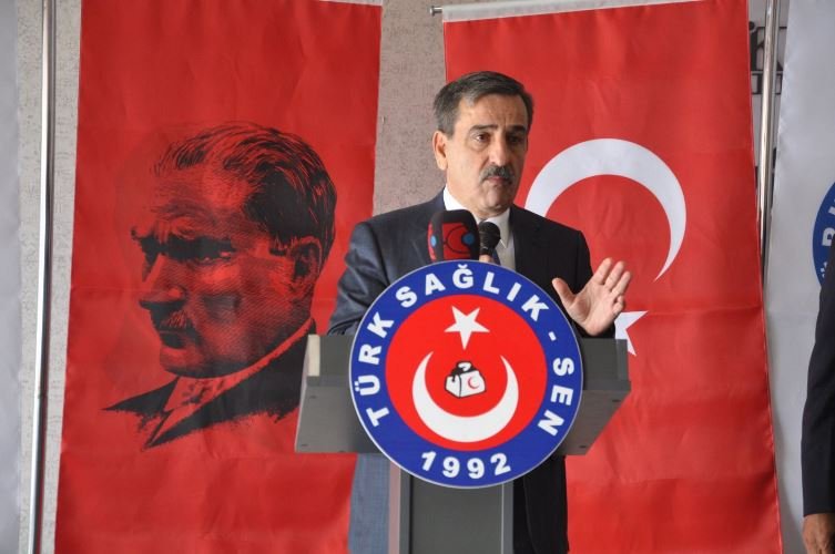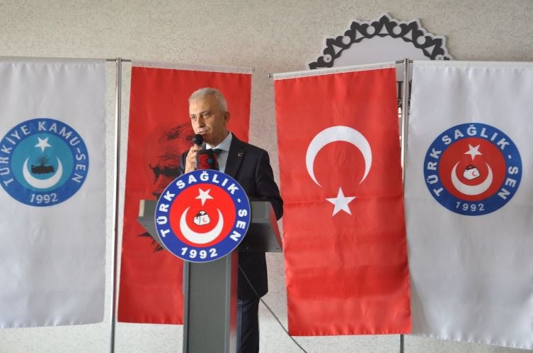 Başkan Ömer Çeker’in ardından konuşma yapan Türkiye Kamu Sen ve Türk Sağlık-Sen Genel Başkanı Önder Kahveci ise yaptığı açıklama da, “Her zor şartlarda sağlık çalışanlarının nasıl fedakârca hizmet verdiğini hepimiz gördük. Onların yaşadığı sorunların tamamını çözmeliyiz. Sağlık çalışanlarına ihtiyaç olamadığı bir zaman yoktur. Pandemi döneminde hiçbirimiz dışarı çıkamadık. Sadece o zaman doktor, hemşire, kamu çalışanları çıktı. O dönem çok fazla sağlık çalışanı hayatını kaybetti. Sadece alkışla sağlık çalışanlarının hakkını ödeyemeyiz. 6 Şubat Depreminde de yanı şekilde çadırlarda hizmet verdiler halen daha vermeye devam ediyorlar. Bu ülkenin sağlık filosu güçlüyle bu Türk krizleri aşması da o kadar kolay olur. Bu yüzden sağlık çalışanlarının fedakârlıklarını unutmayalım ve unutturmayalım” dedi..