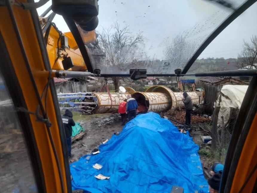 Minarenin enkazı, vinç yardımıyla kontrollü şekilde kaldırılırken, cami çevresinde oluşabilecek ek risklere karşı tedbirler alındı. Yapılan çalışmaların ardından alan geçici olarak güvenli hale getirildi.
