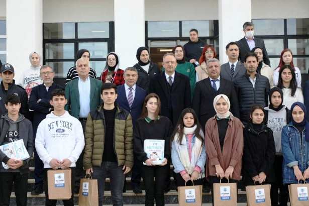 Konuşmaların ardından Kaymakam Kubilay, Başkan Şayir, İlçe Milli Eğitim müdürü Balay ve beraberindekiler okul son sınıf öğrencilerine kitaplarını takdim ettiler.