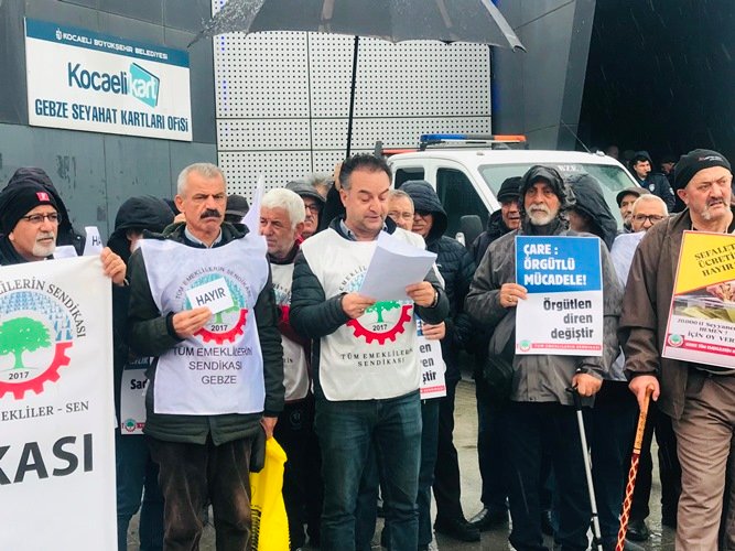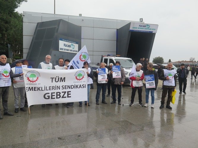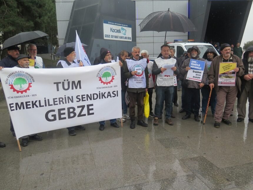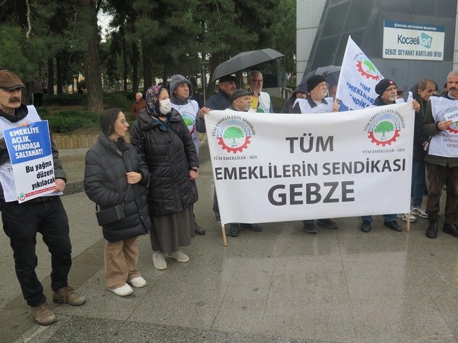 Tüm Emeklilerin Sendikası (TES) Gebze Şubesi, hükümetin ücret politikalarını protesto etmek için Gebze Kent Meydanı’nda basın açıklaması yaptı. Yoğun yağmura rağmen meydanı dolduran emekliler, insanca yaşam talebiyle seslerini yükseltti.